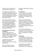 richiesta come ad esempio una copia dell’atto di costituzione.La società dovrà mantenere la sede legale in Australia e nominare un agente residente in Australia, che sarà responsabile nei confronti delle leggi australiane per conto della società stessa.L’iscrizione al registro imprese ASIC richiede 5 giorni, dopodiché alla società verrà assegnatoun Australian Registered Body Number (ARBN) e ovviamente un certificato di registrazione. La società è obbligata a depositare i bilanci annuali all’ASIC.Acquisizione di una società australianaSe la società straniera non desidera registrarsi come “entità straniera” sotto il proprio nome, può acquisire una società già stabilita ed operativa in Australia.L’acquisizione può avvenire attraverso l’acquisto di partecipazioni, quote o beni della società locale.Alcune acquisizioni da parte di società o individui stranieririchiedono l’approvazione da parte del FIRB.Joint VentureLe Joint ventures sono accordi tra due o più parti con l’intento di condurre attività commerciali specifiche fra cui progetti di una certa durata.Spesso sono preferite dagli investitori stranieri che intendono lavorare in Australia per un breve periodo o per un progetto specifico e non desiderano avere una presenza permanente sul mercato australiano.Non occorrono registrazioni o iscrizioni della joint venture a livello governativo, ma sono sufficienti accordi, formalizzati con contratti scritti.PartnershipLe Partnerships o società, sono accordi tra due o più parti (individui o imprese) che si uniscono per condurre un’attività commerciale con lo scopo comune del profitto.La partnership è una relazione legalmente e formalmente riconosciuta e non è considerataprima fermata | 45